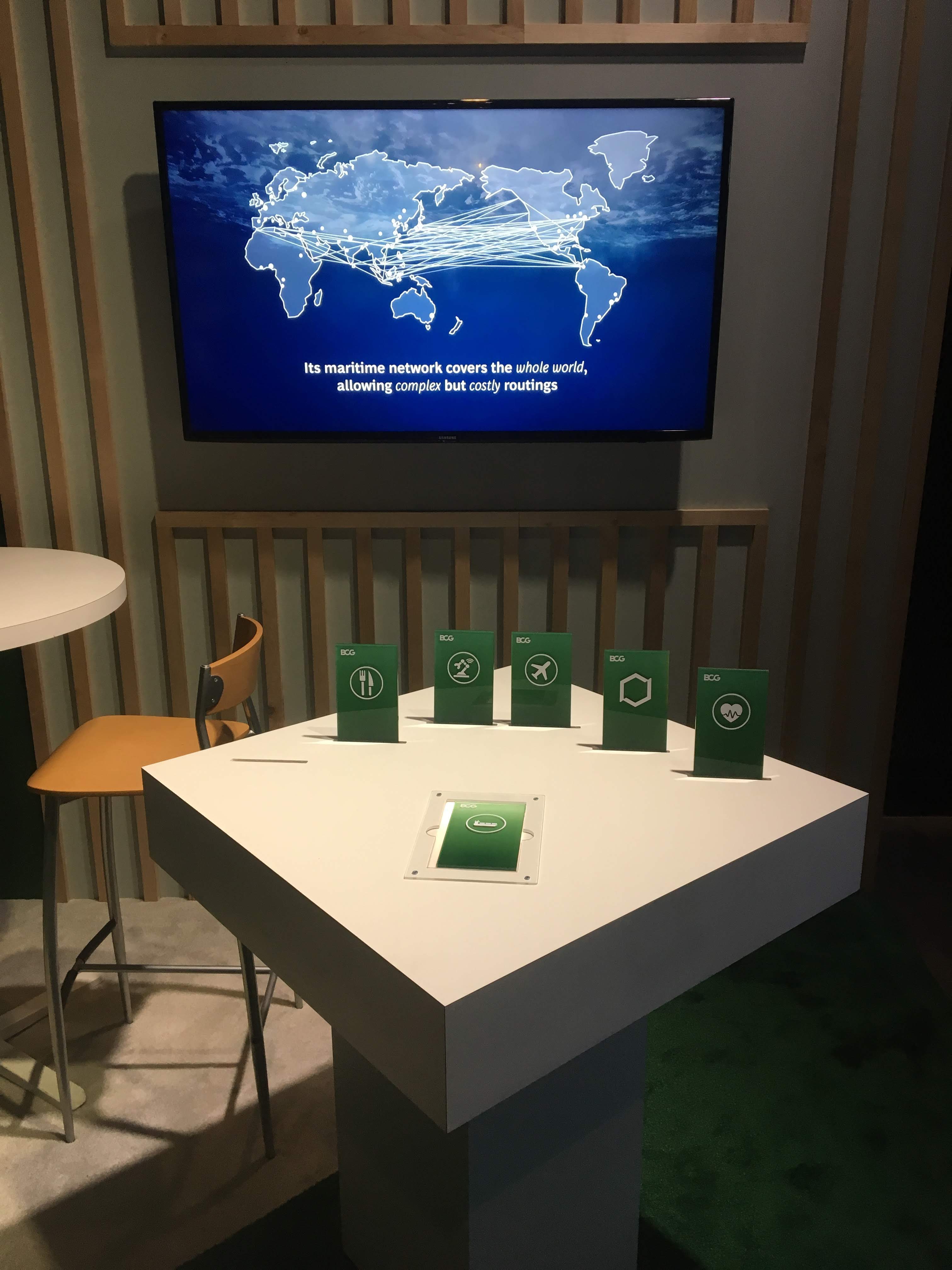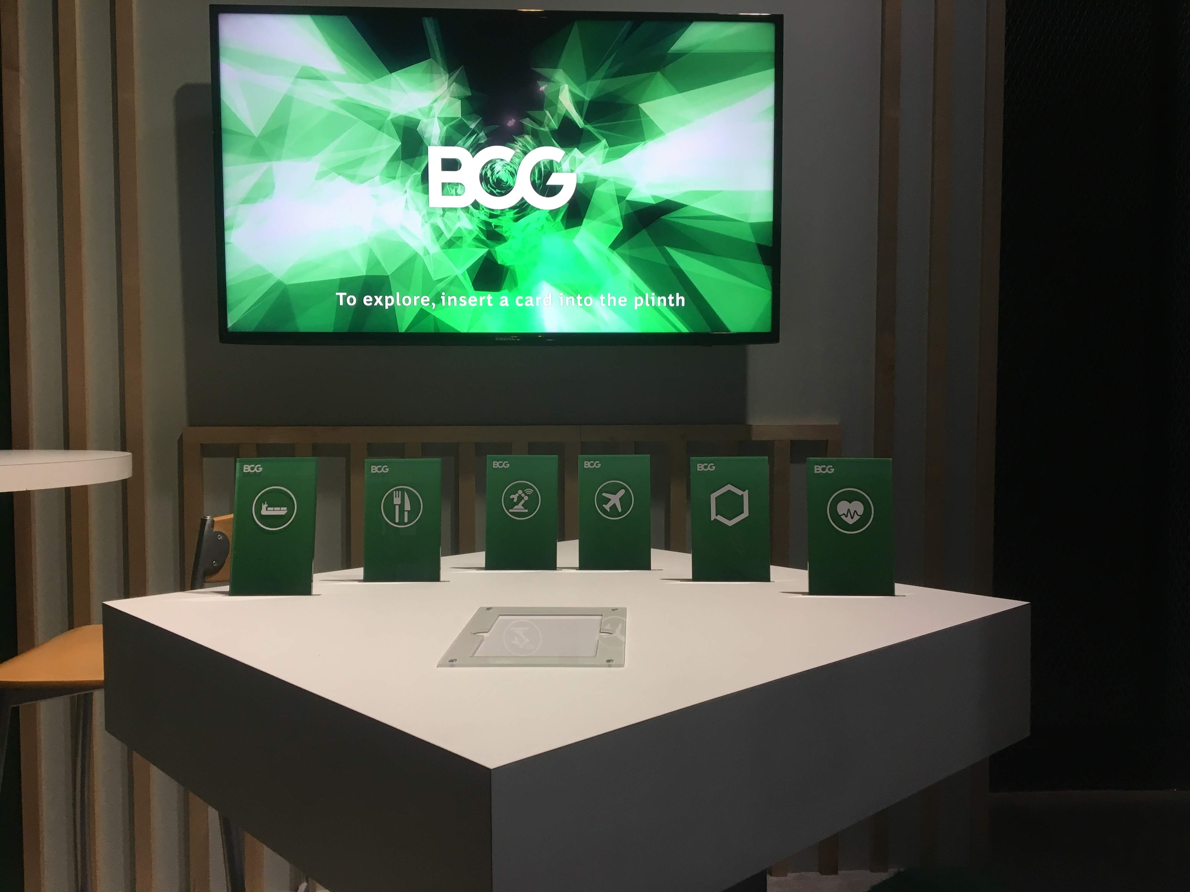 As part of the Genuine X team, I worked on an installation for a conference in america for BCG. The installtion consisted in a table with an RFID reader, and a couple of tags on pieces of acrylic. The pieces of acrylic were triggering video content on the screen.