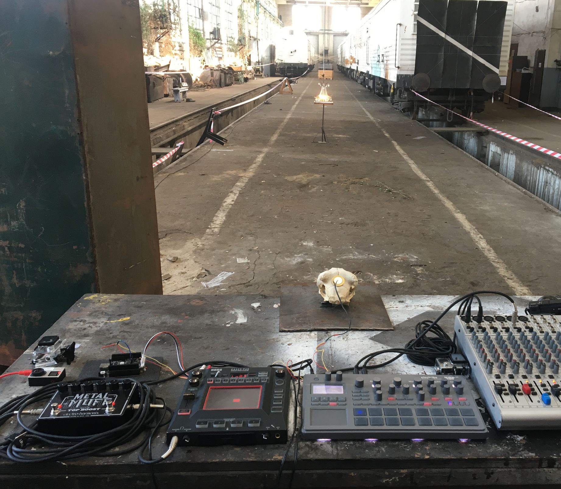 The tactile experience of touching the natural sculptural forms of the skull to unlock its distinct aural language, coupled with the audio and visual impact of the robust industrial surrounds, coalesce towards a unique interactive encounter of multi-layered soundscapes.